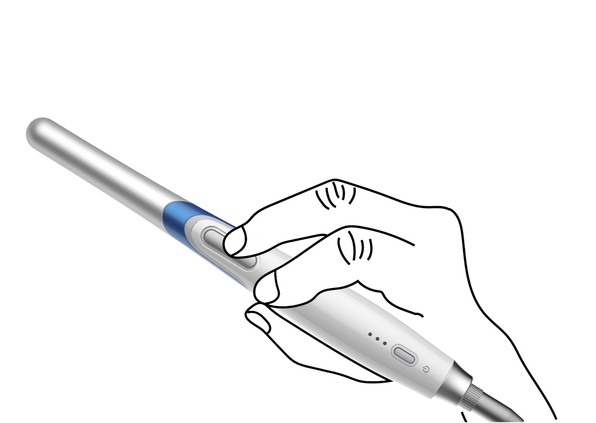 When capturing mandibular teeth, employ your thumb to press the button.